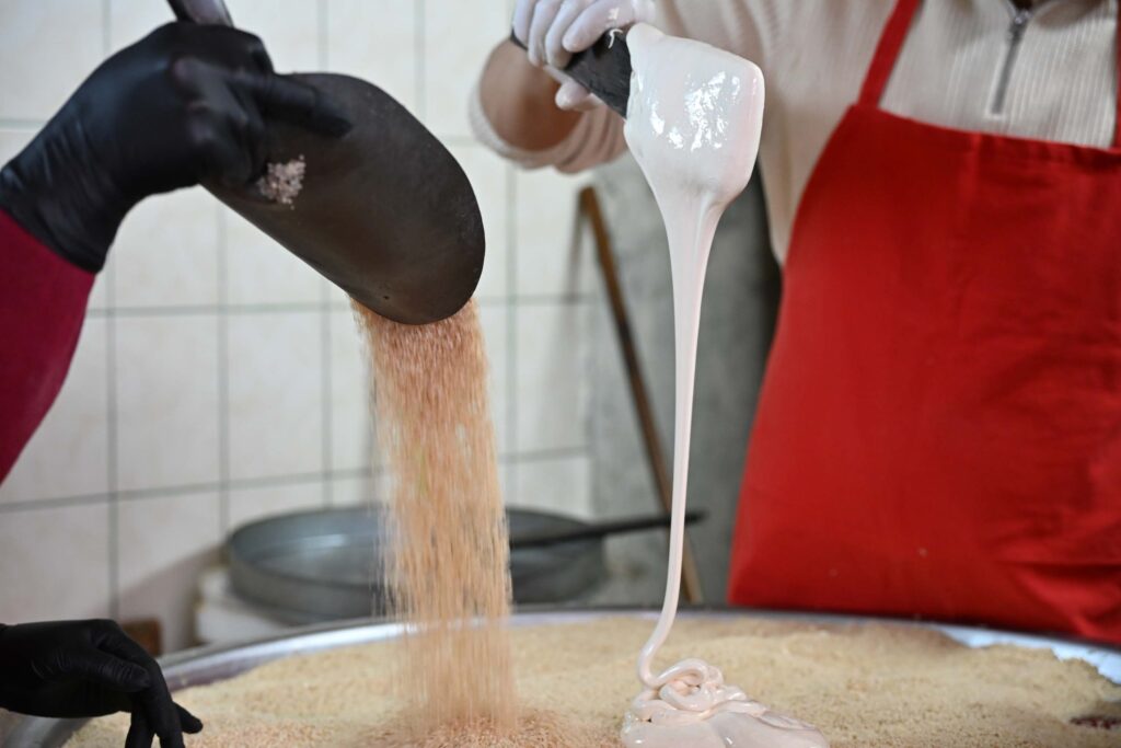 Demirci ilçesinde yaşayan İhsan Akgün (85), 75 yıl boyunca sürdürdüğü helvacılık mesleğini oğlu Mustafa Akgün’e devretti. Hacıhasan Mahallesi’ndeki tarihi iş