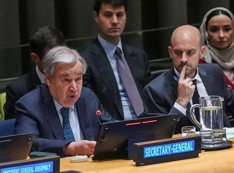 Birleşmiş Milletler Genel Sekreteri Antonio Guterres,BM Genel Kurulu’nda düzenlenen Filistin meselesine barışçıl bir çözüm bulunması ve iki devletli çözümün hayata geçirilmesi konulu Yüksek Düzeyli Uluslararası Konferans’ta konuştu.