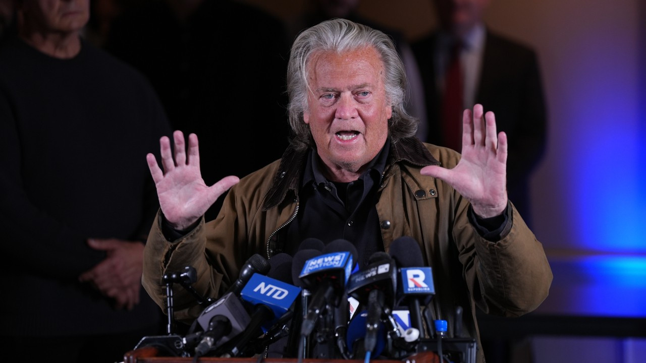 Bannon, basın toplantısında, “(ABD Adalet Bakanı) Merrick Garland, (Başkan Yardımcısı) Kamala Harris ve (eski Temsilciler Meclisi Başkanı) Nancy Pelosi rejiminin siyasi tutsağı olmaktan nihayet kurtuldum” diye konuştu.