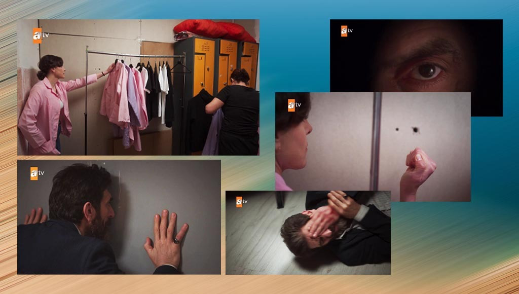 7. bölümde de Hande, işyerinde çalışan kadınları odasındaki delikten ‘dikizleyen’ patronun gözüne delikten şiş sokuyor. Cezalandırma ile kadın tacizine karşı olma yan yana getiriliyor; hukuk ve kanunla hak arama çözümünü ıskalıyor. RTÜK’ün hattına şikâyet ettim.”