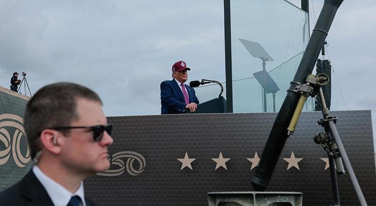 ABD Başkanı Donald Trump Kuzey Carolina’da kameraların karşısına geçti. Daha önce suikaste uğrayan Trump’ın konuşma yapacağı kürsüye kurşun geçirmez cam hazırlandı. Trump’ın açıklamaları şöyle: Karşımızda çok güçlü bir ordu var. ABD ordusu çok güçlü bir ordu. Eğer ABD olmasaydı, şu an herkes Almanca konuşuyor olacaktı.